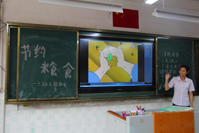 參加完升旗儀式,各班開展了節約糧食的主題班會。各班主任通過多媒體屏幕和同學們朗讀了《憫農》這首詩,“春種一粒粟,秋收萬顆子。四海無閑田,農夫猶餓死。”這幾個字格外醒目,教育了同學們要知道每一粒糧食都來之不易,提醒同學們珍惜糧食、減少浪費。老師還向同學們講解了節約糧食的重要性和浪費糧食的危害性。通過觀看節約糧食的小短片,每一個畫面生動形象,教育和引導學生要從自身做起,養成節約糧食的好習慣。