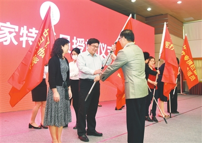 向醫(yī)療專家特派員授旗。本報(bào)記者 文波 攝