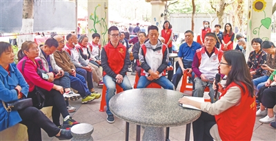 城南社區黨委書記李嘉清開展黨史學習教育微宣講。本報記者 文波 攝