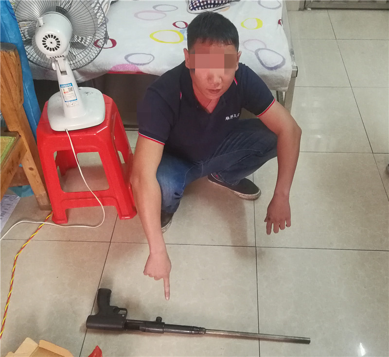 追查案件過程中,警方再次掌握另一條線索,東鳳鎮一名外號叫“林五”的男子有非法買賣槍支彈藥的重大嫌疑。經研判分析,3月11日10時,警方突襲了東鳳鎮玉峰路一辦公室,32歲廣西男子林某波落網,警方打開林某住處時吃驚不小,里面藏有一條一米多長的槍支,彈藥77發,另有槍支配件一批。經鑒定,繳獲的自制槍支為火藥槍。林某波在審訊中交代了其在某平臺購買槍管,并對槍支和子彈進行非法改裝的經過。
