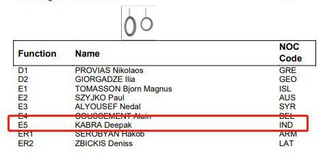從東京奧運官網可以查到,迪帕克-卡布拉不僅是體操男子個人全能決賽中跳馬項目的完成分裁判,而且也是東京奧運會體操男團決賽中吊環項目的完成分裁判。