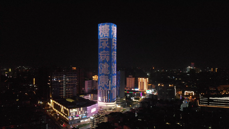 當晚,“人人享有糖尿病健康管理”不斷在完美金鷹大廈外立面燈光秀滾動播放,成為城市一道亮麗風景。