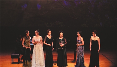 當晚演出中,王秀芬甘為學生當主持,除了在開場和壓軸時與學生分別合唱《唱支山歌給黨聽》《我愛你中國》,并附加了一首《一杯美酒》的獨唱外,整場演出由其五位青春靚麗的在讀女學生擔綱。她們從大學四年級到研究生不等,每人都分別演繹了中國藝術歌曲和西方歌劇選段,展現出技術的全面性。雖然尚未正式出道,她們對聲音與情感的把控已恰如其分,將角色刻畫得入木三分。