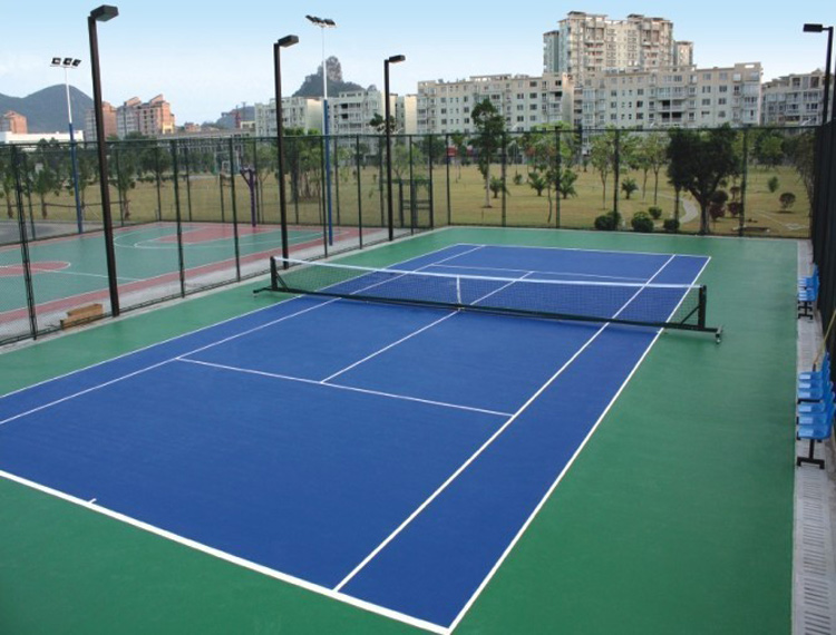 材料簡(jiǎn)介:丙烯酸樹脂球場(chǎng)(彈性丙烯酸網(wǎng)球場(chǎng),硬地丙烯酸網(wǎng)球場(chǎng))適用于專業(yè)選手比賽和訓(xùn)練使用,由100%純丙烯酸乳液加入進(jìn)口色料及助劑制成,完全符合環(huán)保要求,具有較好的耐磨性能,防水、防曬、防滑、可鋪設(shè)于室內(nèi)外瀝青或水泥面上。可依照加砂及水的配比調(diào)整表面糙度。中級(jí)性能產(chǎn)品。