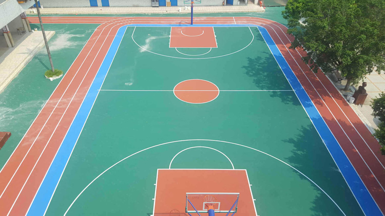 施工工序:打磨場(chǎng)地----清洗---補(bǔ)積水---切割伸縮縫---底涂---伸縮縫埋制---彈性層---找平層---面涂--劃線。