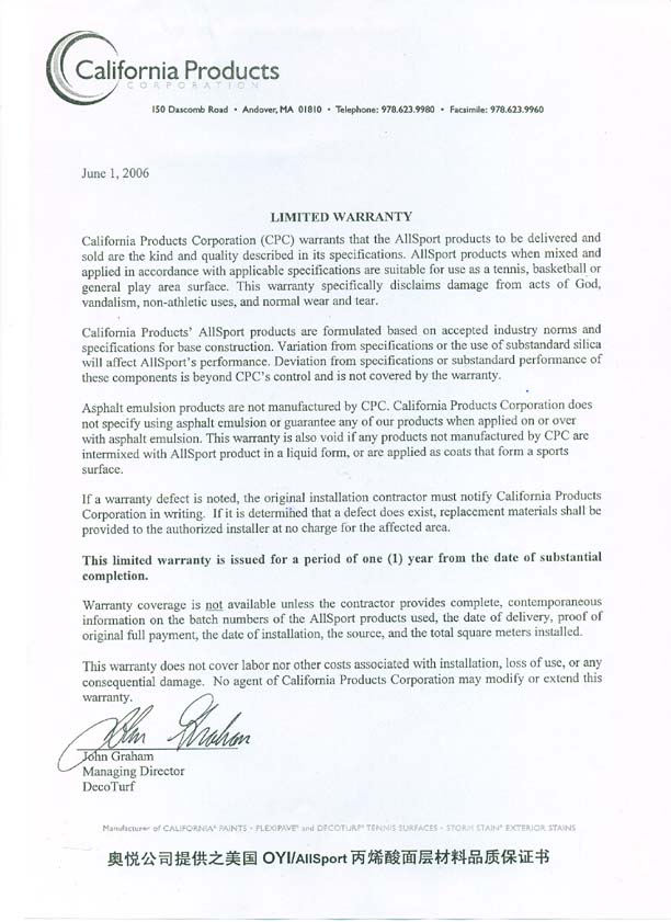 首頁 > 塑膠球場工程 > 丙烯酸 > 美國OYI AllSport 全運TM丙烯酸運動地面系統