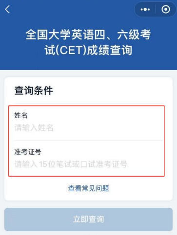 5、輸入查詢條件,點(diǎn)擊立即查詢就可以查詢英語四六級(jí)成績(jī)了。
