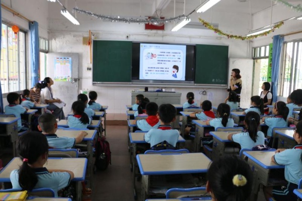 陳澤玲和梁土瑜老師設(shè)計(jì)的班會(huì)課生動(dòng)、有趣,兩位老師都利用游戲體驗(yàn)方式讓孩子們了解到自己的情緒變化的多樣和復(fù)雜。讓孩子們知道,如果有了壞情緒后,要懂得選擇正確調(diào)節(jié)情緒的方法;吳偉玲老師開展的“珍愛生命,守護(hù)生命”為主題的班會(huì)課,利用生動(dòng)的事例闡明簡(jiǎn)單的道理,深入淺出,別開生面;姚燕老師的班會(huì)課以“學(xué)會(huì)交往”為主題,以小視頻導(dǎo)入,同學(xué)們展開熱烈的討論,課堂上輕松活躍,大家各抒己見,發(fā)表不同的看法。曾大妹、許妙旋老師課前準(zhǔn)備充分,課型新穎,師生互動(dòng)效果好,老師們向同學(xué)們展示了一節(jié)節(jié)生動(dòng)而又富有教育意義的班會(huì)課,觸動(dòng)著每一個(gè)孩子的心靈。