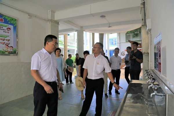 黃澤培書記向吳維雄校長詢問、了解學校的基本情況,實地巡查學校校園環境、防疫措施情況及在建工程項目。在詳細了解學校大致工作情況后,黃書記對林東小學的黨建工作、心理健康教育開展及疫情防控工作給予了充分肯定。