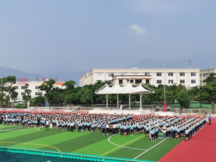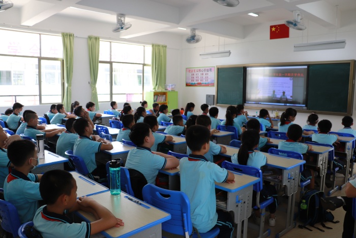 開學季在升旗儀式中拉開了序幕:鮮艷的五星紅旗迎風飄揚,雄壯的歌聲激蕩在校園上空,挺拔的身姿中詮釋著勇氣和擔當,堅毅的眼神里寫滿了中國少年強;接著,郭炳森校長為寄語新學年:他希望全體師生要有家國情懷,新學年要有新目標,勉勵大家尚德善學,身體力行,努力成長為更好的自己;然后,開展了新學期專題講座活動:李偉主任圍繞安全、文明禮儀等方面向全體師生進行“同做中山人,共建文明城”助力中山創建文明城市;麥麗飛主任向全校師生送上最誠摯的祝福,并指出:“習慣成就未來”倡議大家培養良好習慣,注重自主成長。全體師生在班級收看了釘釘實況直播。