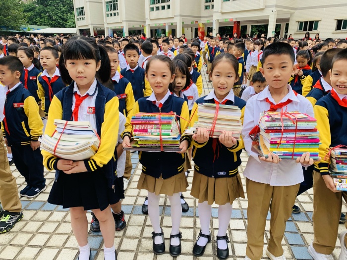 2020年10月19日早上升旗儀式,全體師生攜愛(ài)心書(shū)籍,歡聚學(xué)校操場(chǎng),參加愛(ài)心捐書(shū)儀式。