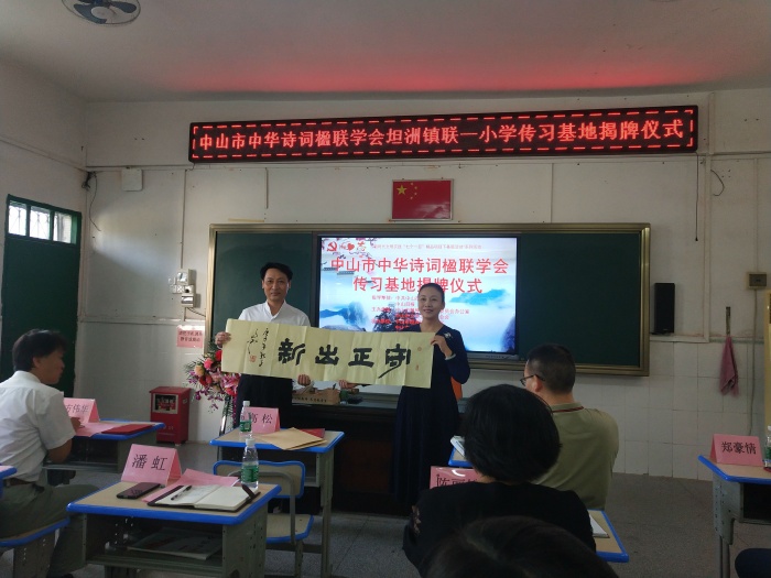 為弘揚中華傳統(tǒng)詩詞楹聯(lián)之美,促進中華優(yōu)秀傳統(tǒng)文化的傳承與發(fā)揚。2020年10月21日下午,中山市中華詩詞楹聯(lián)學(xué)會坦洲鎮(zhèn)聯(lián)一小學(xué)傳習(xí)基地揭牌儀式暨“詩說中山”主題講座順利舉行。