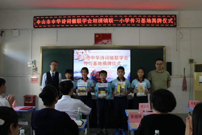 中山市中華詩詞楹聯(lián)學(xué)會主席高松先生、坦洲鎮(zhèn)文學(xué)協(xié)會會長方偉華先生、坦洲鎮(zhèn)文學(xué)協(xié)會副會長唐云光先生、鄭豪情先生、王宏先生和聯(lián)一小學(xué)全體行政及語文教師參加此次活動。