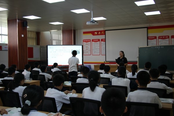 上午9:15分,關莉和趙明明老師在多媒體課室依次授課,周曙老師仔細觀察了兩位老師的課堂教學。課后,老師們圍坐在一起,聆聽教學指導。周老師首先肯定了兩位老師授課的主要優點:關莉老師的課富有親和力,課堂生動活潑,對教學內容有思考、有設計;趙明明老師語言凝練,設問精巧,注重知識的發生發展過程。接著,周老師從兩節課的教學目標、教學引入、教學過程、例題習題配置等方面做了深入細致的指導,對教學內容進行了深刻的解讀,揭示了教學內容所體現的數學思想方法,指出了本節課應該落實的核心素養目標。周曙老師說,語言表達是教師的教學基本功,教材解讀是上好課的前提,思想方法是課堂教學的靈魂。希望青年教師篤實教學基本功,鉆研教材,以學生為本傳授數學思想方法,讓學生愛數學愛學數學。要從知識系統的角度思考章節教學,章節起始課要發揮承前啟后、激趣導學的作用。周老師強調,課堂引入究竟是從數學情境引入,還是從實際問題情境引入,應從具體課例出發,多思考不拘泥。