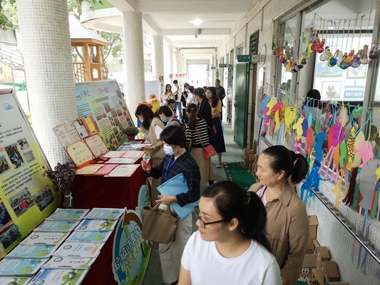 在清風(fēng)徐徐的早上,評(píng)委們迎著朝陽(yáng),來(lái)到了林東小學(xué)。他們考察的第一站是三(4)班教室。班主任莊麗珍老師和同學(xué)們一起向評(píng)委們介紹了“花樣扇子班”的創(chuàng)建歷程和建設(shè)成果。三(4)班教室的里里外外都熏陶著優(yōu)雅的扇子繪畫的藝術(shù)氣息,孩子們?cè)谡诰劬珪?huì)神地作畫。蘭花、梅花、竹子、山水、土石...... 扇子上各種各樣的圖案,色彩艷麗,好看極了。走廊上,黑板上、墻壁上,琳瑯滿目的各種扇子繪畫展現(xiàn)眼前,中國(guó)傳統(tǒng)文化繪畫藝術(shù)氣息彌漫著整個(gè)教室。那一股蓬勃向上的精神力量,那一股熱愛(ài)傳統(tǒng)文化藝術(shù)的情懷,讓人感動(dòng)。接下來(lái),評(píng)委老師們來(lái)到了二(4)班教室。他們是“環(huán)保先鋒班”。學(xué)生們的環(huán)保手工創(chuàng)作,讓評(píng)委們眼前一亮。教室里每一面墻都是一個(gè)環(huán)保與藝術(shù)結(jié)合的展示平臺(tái)。學(xué)生的環(huán)保知識(shí),也讓評(píng)委老師們驚嘆,大家都會(huì)意稱贊著,不禁為這些活潑、愛(ài)學(xué)習(xí)的“環(huán)保先鋒”點(diǎn)贊。更引人注目的,就是“環(huán)保先鋒班”孩子們的環(huán)保時(shí)裝秀。隨著節(jié)奏明快的音樂(lè),同學(xué)們展出自己設(shè)計(jì)的環(huán)保服裝。孩子們不僅秀出了舞臺(tái)的風(fēng)尚,更秀出了環(huán)保的思想。通過(guò)特色活動(dòng),讓大人和孩子們一起托起環(huán)保的責(zé)任,共創(chuàng)環(huán)保文明的美麗家園。