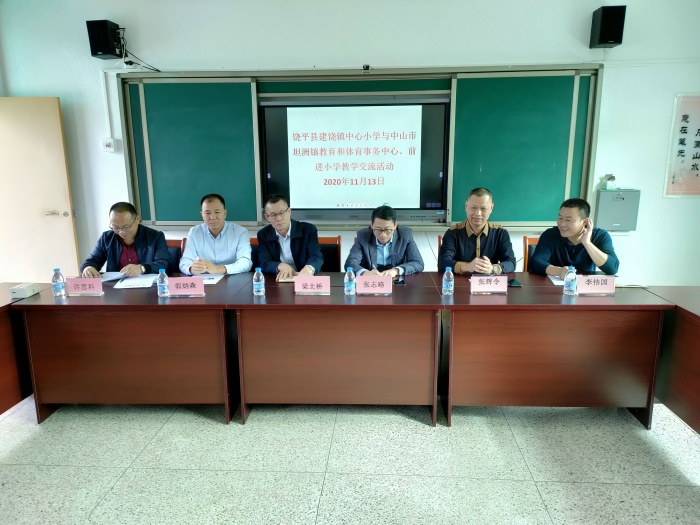 為落實《中山市教育和體育局關于2020-2021學年“三區”人才支持計劃教師專項計劃有關實施工作的通知》精神,中山市坦洲鎮前進小學副校長許思科于今年9月,到潮州市饒平縣建饒鎮中心小學進行為期一年的“三區”支教工作。為了進一步夯實支教各項工作,加強兩地教育的交流與合作。11月13日,中山市坦洲鎮教育和體育事務中心攜前進小學赴饒平縣建饒鎮中心小學開展教學交流活動。坦洲鎮教育和體育事務中心主任張志略、教研專干梁北橋,前進小學校長郭炳森,建饒鎮中心小學總部校長李偉國出席了本次活動。