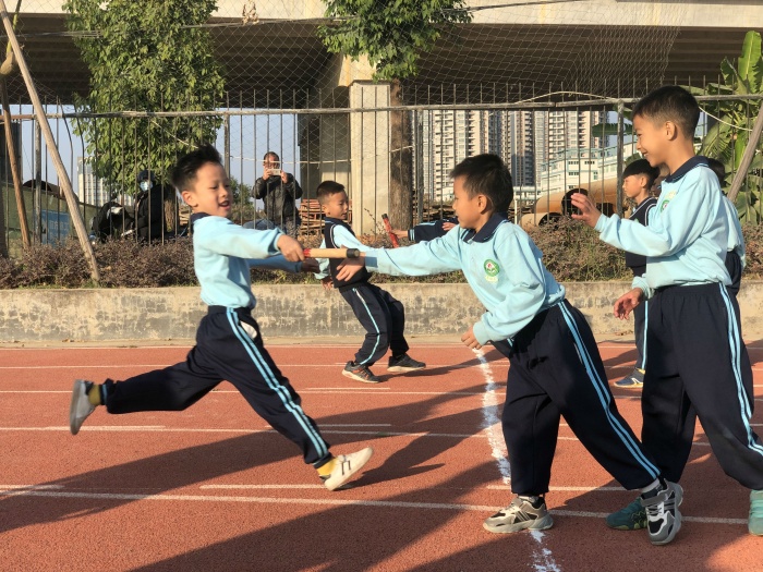 星期一至星期四的年級組田徑比賽,各班全部到場給參賽選手加油打氣,“五1班,加油!”“四2班,加油!”的助威聲響徹云霄。班主任和學生紛紛表示,這種比賽方式比以往集中比賽更鼓舞人心,更具觀賞性。星期五下午簡單的入場式之后,余壁峰校長致辭,他寄語孩子們每日運動一小時,健康幸福一輩子。