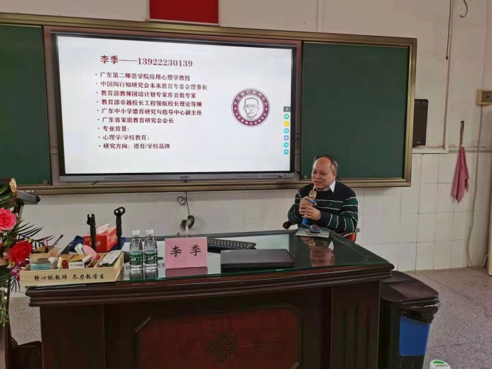 隨后,李季教授為全體教師開(kāi)展講座。李教授從“德育一體化建構(gòu)的立德樹(shù)人”到“幫助學(xué)生找到最適合自己的學(xué)習(xí)方式”等一一展開(kāi)。李教授謙遜平實(shí)、樸實(shí)真誠(chéng)、字字珠璣,讓老師們享受了一席豐盛的精神大餐。雖然乍暖還寒,春寒料峭,老師們卻感受到春意盎然、熱情澎湃,并深深地被李教授和藹可親的人格魅力和專業(yè)學(xué)識(shí)所吸引著。