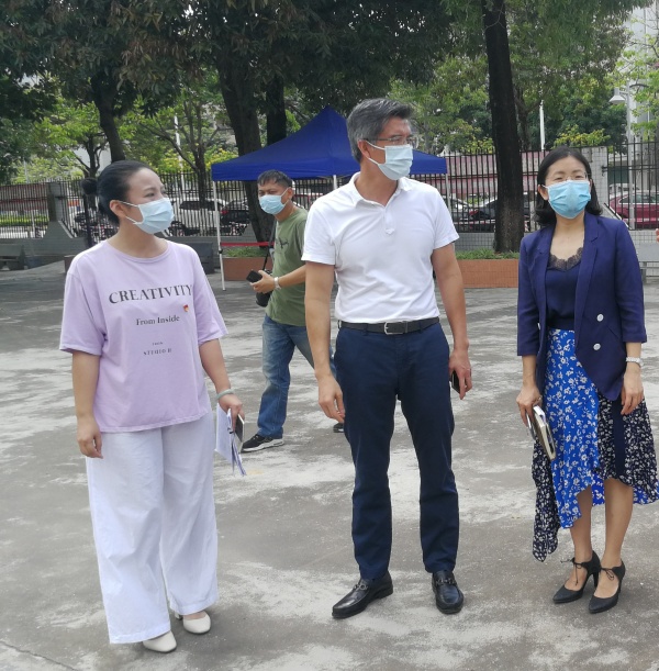 在聯一小學全體行政陪同下,督導小組對聯一小學當前的防疫配套設施的配備和使用情況進行了詳細的詢問。特別對校門口測溫點、觀察區、臨時隔離區、教學樓和操場等重點場地,進行了專門的調研和指導,實地檢查室場的衛生消毒、臨時觀察點設置、物資是否充足、是否符合標準等防疫措施落實情況。檢查過程中,督導小組詳細詢問每一個防控的細節,潘虹校長和行政們在陪同過程中一一作了詳細的回答,并對學校疫情防控和師生返校復課前的工作情況進行了詳細的匯報。