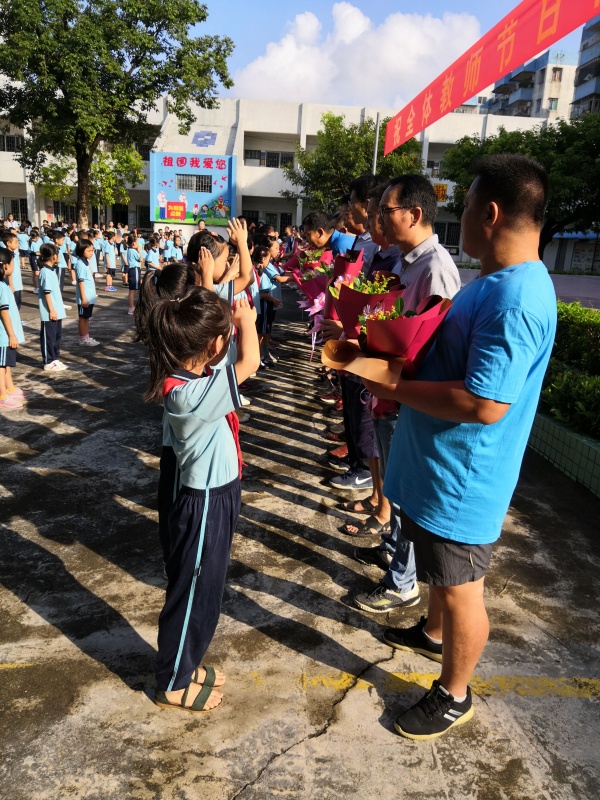 9月10日早上8:10,隨著國旗徐徐上升,國歌響起,全體師生井然有序地跟著唱起,在學校工會和德育處的組織下,慶祝活動順利開啟。