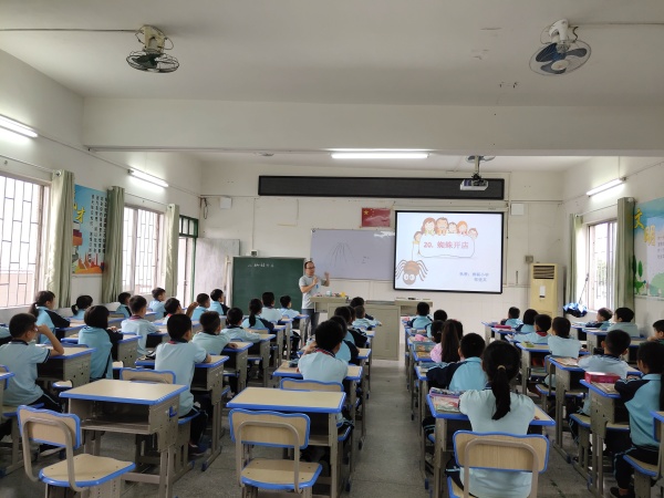 梁健其老師執教的是部編版二年級語文上冊第二十二課《蜘蛛開店》第二課時。課堂上,他注重創新形式,采用多種形式的讀讓學生熟悉文本,風趣幽默的課堂語言讓學生沉浸在愉快的學習氛圍之中。他更善于運用激勵性的言語、直觀動感的圖片、音頻引導孩子們進行自主、探究的學習,為孩子們開拓了表達自我和展示自我的平臺。最后利用清晰明了的表格幫助學生梳理文本,串聯文意。