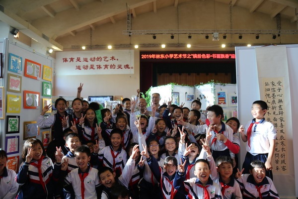 開幕式上,林東小學校長吳維雄致了開幕詞。吳校長著重表達了對此次書畫展的美好祝愿及期許。該校名譽董事長林東先生也在致辭中強調“無論是學藝術還是做人,都應該有一顆持之以恒的心”,他更鼓勵林東的學子們要有一顆愛國之心,為民族而自豪。接下來,坦李君杰先生為該校贈送書法作品。隨后,到場的嘉賓欣賞師生精美的作品。本次展出的書畫作品和手工作品,全部出自學校老師和年級各班“小藝術家”之手。作品琳瑯滿目,色彩紛呈。學生們以大膽的構思,細膩的手繪制了一幅幅線條流暢,構思巧妙的的作品。栩栩如生的卡通人物,逼真的山水畫,活潑可愛的動物圖、工整有道的書法作品,展示了學生在校學習藝術的成果,以及對藝術的自我見解,同時也為新年的到來增添了濃濃的節日氛圍。
