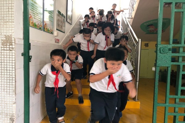 隨著警報響起,各個班級正副班主任迅速按照要求指揮全體同學根據規劃好的最優路線進行逃生,整個過程,要求學生保持警惕,用濕手巾捂住口鼻,安靜快速撤離課室。到達臨時集合點后,各班班主任立即清點人數并在微信群向各年級組長匯報安全到達人數。學校總務處吳結紅主任對本次活動同學們的表現給予肯定,同時指出本次演練學生存在的問題并再次強調了疏散的要求:在逃生過程中,一部分學生沒有按要求進行疏散,到達平地要快步走而不是快跑,到達空地要保持安靜,聽從安排。之后吳主任結合國慶節放假通知對學生進行安全教育。警報解除后,各班有序進行常規教學工作,演練圓滿結束。