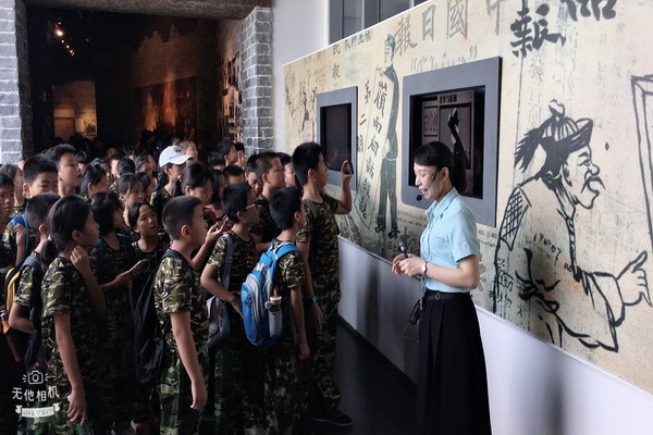 第二站來到了廣州軍事武器展覽館,展覽館里有革命戰爭時期使用過的各種各樣的手榴彈、地雷及炮彈等,還有像楊靖宇、李先念等革命先烈的紀念照。通過一件件實物的展示及教官對于各位革命者事跡的講述,孩子們感受到了戰爭的艱險,感受到了國家命運的多舛,同時也感受到了無數愛國革命黨人的火熱愛國之情。?