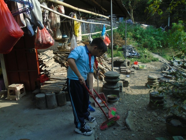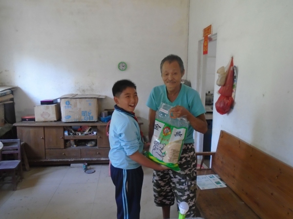 陳伯對學校黨支部和大隊部的到訪感到十分高興。隊員們熱情獻上了為老人準備好的大米、食用油等生活用品。圍著老人噓寒問暖,陪老人聊天、講笑話,還與老人分享了自己在學校發生的種種事情,房間里充滿了歡聲笑語,老人聽得眉開眼笑。許思科委員還詳細地了解了老人家的身體狀況,希望老人家能好好保重自己。陳伯也鼓勵隊員們要好好學習,將來更好地為社會作貢獻。接著隊員們主動為陳伯打掃衛生、收拾屋子。陳伯看到孩子們如此孝順、乖巧,深受感動。