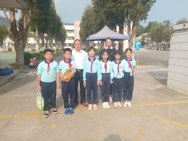2019年11月15日,下午15時00,在前進小學黨支部委員許思科副校長的帶領下,大隊輔導員郭瑞芬老師及少先隊大隊委7名隊員,來到占涌村陳伯伯的家,進行慰問活動。