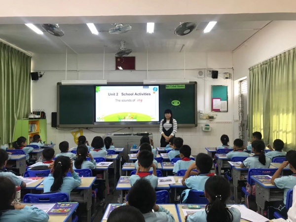 活動首先由盧云工作室成員坦洲鎮前進小學梁勝滿老師和四年級的同學們展示了一節生動活潑的以《Sports》為主題的語音繪本導學課。課堂上,梁老師借用繪本情境,讓學生們通過繪本閱讀表演和肢體律動理解運動詞匯音、形、義,最后還鼓勵學生小組合作創編新動物,進行發散性思維訓練。課后,梁老師對課的設計思路進行了簡要的介紹。