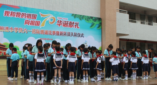 入隊儀式在出旗曲中拉開了序幕。鮮紅的隊旗迎風飄揚,在嘹亮的隊歌聲中,一年級29名學生光榮地加入了中國少年先鋒隊。一(3)班鐘紫凝同學代表新隊員發言,她表示將下定決心,努力學習,團結互助,遵守紀律,爭當一名優秀的少先隊員。接著德育主任李偉勉勵新隊員們在少先隊大家庭的熏陶下爭做優秀少先隊員,堅定跟黨走,勇敢追逐自己的夢想!