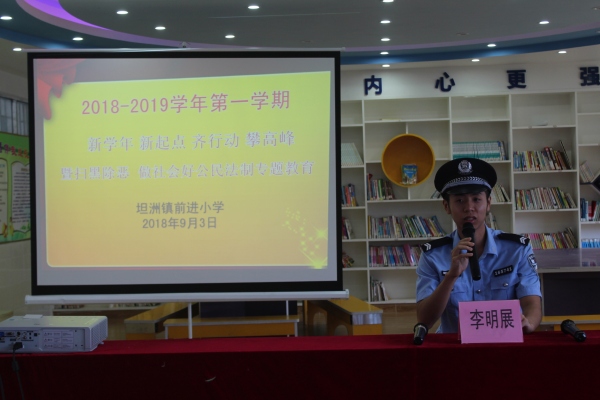 開學(xué)典禮在雄壯的國歌聲中拉開帷幕。接著由永前派出所李明展警官為全校師生進(jìn)行“掃黑除惡 做社會好公民”的法制專題教育。