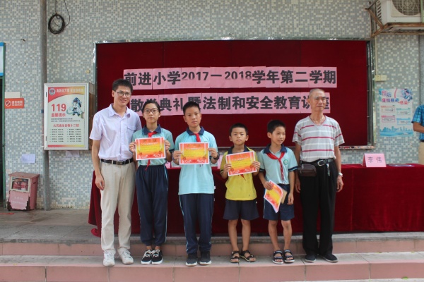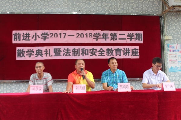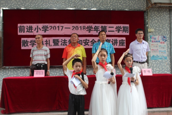 郭炳森校長在散學(xué)禮上對一學(xué)期以來,同學(xué)們的優(yōu)異表現(xiàn)作了簡單的回顧,對表現(xiàn)突出的同學(xué)作了簡單而又隆重的表彰,并寄語同學(xué)們要用進步作為前進小學(xué)的主旋律,從一年級到六年級,拾階而上,銳意進取,做更好的自己。關(guān)工委劉志明主任作了法制安全教育講座,劉主任從飲食起居、用火用電、出行安全和外出游玩方面的注意事宜作了詳細(xì)又具體的講解,并呼吁同學(xué)們珍惜生命、遵紀(jì)守法,做品正行優(yōu)的好少年。 緊接著,分管德育安全的李偉主任作了安全教育講話,著重強調(diào)了夏季安全、交通安全、出行安全,為愉快的假期奠定了良好基礎(chǔ),激勵了全體同學(xué)更上一層樓的斗志。