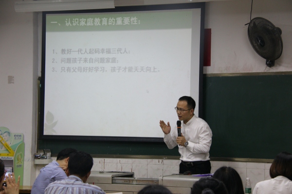會議第一講——家庭教育。這次家庭教育專題講座由國家家庭教育講師、東鳳鎮(zhèn)教育事務(wù)指導(dǎo)中心德育專干賴立章老師主講。賴?yán)蠋熅o貼時代脈搏,通過生動的故事和鮮活的案例為家長們“把脈”,指出家長們在教育孩子中存在的誤區(qū),建議家長更新育兒觀念,對家長怎樣用心用智教育孩子方面進(jìn)行了詳細(xì)的講授,賴?yán)蠋熣J(rèn)為“以身作則、保持良好的婚姻關(guān)系、關(guān)心孩子的學(xué)習(xí)、關(guān)注孩子的生活習(xí)慣、注重教育孩子的方法”等方面對孩子的成長有著莫大的聯(lián)系。家長不但要做孩子的好伙伴、做孩子的好老師,更要學(xué)會賞識孩子的進(jìn)步,學(xué)會自我提高家教方法。