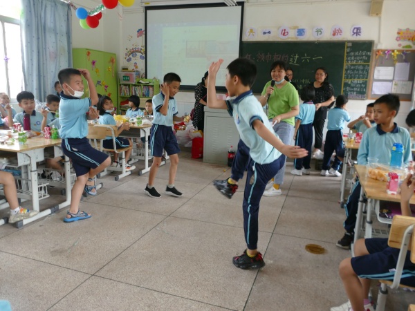 接下來,每班開展了花式多樣,生動(dòng)有趣的 六一慶祝活動(dòng)。看!隊(duì)員們臉上燦爛的笑容;聽!隊(duì)員們悅耳的歌聲。最受孩子們歡迎的是美食分享會(huì)。看那一張張小嘴一邊吃著同學(xué)間分享的美食,還一邊歡樂的與老師、同學(xué)們交流玩耍,畫面多么的愜意啊!面對(duì)這樣美好的畫面,攝影師老師趕緊按動(dòng)快門,一張張的照片留下了這個(gè)夏天、這個(gè)六一最美好的記憶。