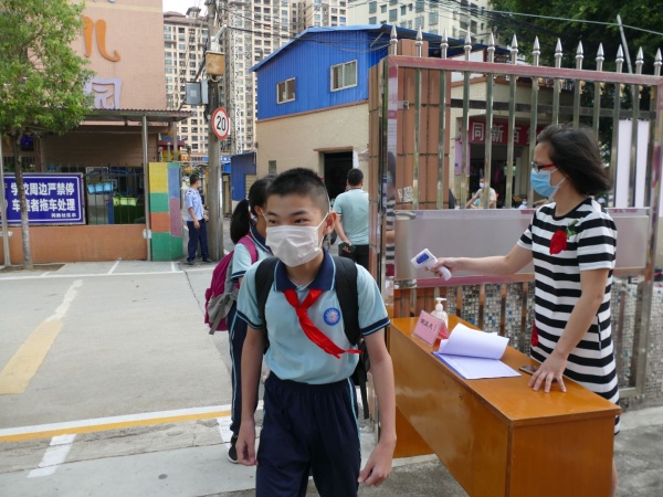 5月18日,夏風和煦,陽光明媚。坦洲同勝小學四至六年級的學生結束了“超長的寒假”,迎來了返校復學的第一天。