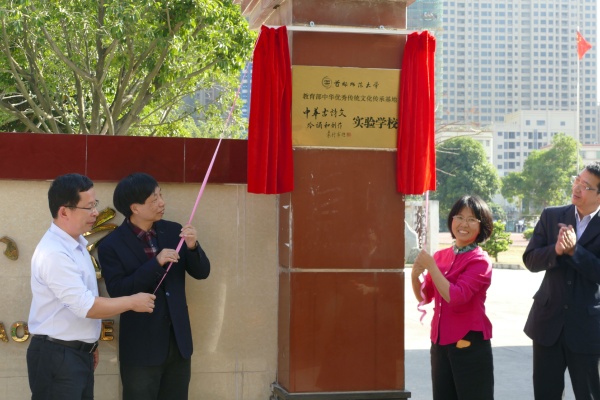 2019年11月22日下午,教育部中華優(yōu)秀文化傳承基地暨中華古詩(shī)文吟誦和創(chuàng)作實(shí)驗(yàn)學(xué)校揭牌儀式在同勝小學(xué)舉行。中山市教育學(xué)會(huì)會(huì)長(zhǎng)陳春艷、安阜小學(xué)校長(zhǎng)余壁峰以及同勝小學(xué)校長(zhǎng)陳小麗共同為同勝小學(xué)揭牌。