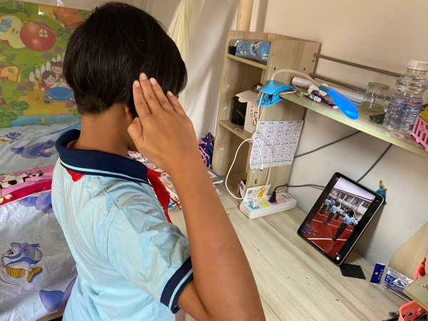 三年級學生還沒復學,但也在家里參與線上升國旗儀式