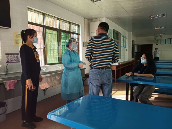演練開始前,總務主任李少基進行詳細安排部署,并宣講了本次演練的流程和重點注意事項,同時強調了此次演練的重要性和每位教職員工的崗位職責。演練分四個場景:“校門口人臉識別測體溫”,“課間出現學生發燒”,“課間出現學生嘔吐”,“學生就餐”。全體教職工投入演練,迅速進入角色按照演練方案進行演練,整個過程大體流暢,遵循逐級上報的原則,有條不紊地進行應急處置,充分體現了老師的應變和反應能力。社區醫生郭容喜在觀摩演練后在細節方面提出了更有效的處置建議,讓老師們對應急處置的實效性心中有數。
