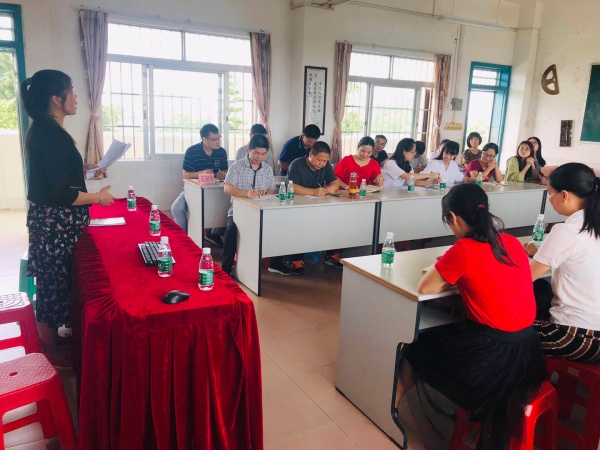 新合小學德育主任盧國慶向三校的領導和教師代表作了工作匯報。他主要把學校的特色項目——孝德教育,做了介紹。他說:“讀好孝之道的書,上好孝之道的課,講好孝之道的故事,演頌孝之道的劇(把孝之道融入詩歌朗誦之中進行傳播),唱好孝之道的咸水歌;做孝之道的家庭作業,邀請名師給家長進行親子講座,讓雁陣飛來開展親子團康。把孝之道走進孩子的心靈,落實在行動上。”之后大隊輔導員容甄彤就學校開展五項常規管理方面所做的工作作了匯報。她說:“工作應該從細處入手,重在落實。”容老師的工作非常踏實,非常盡責,受到了德育主任的高度肯定。