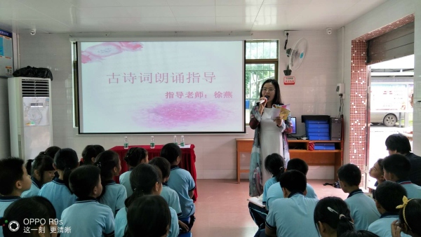 為了提高學(xué)生的朗讀水平,4月30日下午,坦洲鎮(zhèn)新合小學(xué)教導(dǎo)處邀請(qǐng)了坦洲鎮(zhèn)合勝小學(xué)優(yōu)秀的語(yǔ)文教師兼教導(dǎo)副主任徐燕老師到該校指導(dǎo)全體學(xué)生讀古詩(shī)詞,給學(xué)生們傳授朗讀的方法和技巧。徐老師一口標(biāo)準(zhǔn)且流利的普通話,清脆悅耳的聲音,優(yōu)雅迷人的模樣,超高水平的朗讀,輕松幽默的語(yǔ)言使孩子們?nèi)玢宕猴L(fēng),徐老師有針對(duì)性地為低中高年級(jí)的學(xué)生分別精心地選取了有代表性的詩(shī)歌,采取用不同的方法讓學(xué)生體會(huì)朗讀,感受朗讀的技巧方法與快樂。首先,徐老師以《春曉》為例,徐老師教會(huì)低年級(jí)的孩子利用拍手等方式體會(huì)朗讀的節(jié)奏感;接著,引導(dǎo)中年級(jí)學(xué)生以想象的方式去朗讀古詩(shī)。最后,指導(dǎo)高年級(jí)學(xué)生在理解的基礎(chǔ)上,朗讀古詩(shī),讀出情感。在徐老師循序漸進(jìn)的引導(dǎo)下,該校學(xué)生積極參與,躍躍欲試,對(duì)朗讀古詩(shī)表現(xiàn)出了從所未有的熱情,并且朗讀水平也蹭蹭往上升。徐老師說:“朗讀需要儀式感。”朗讀要有節(jié)奏感,朗讀需要想象,朗讀需要建立在理解的基礎(chǔ)上,讀出自己的情感。