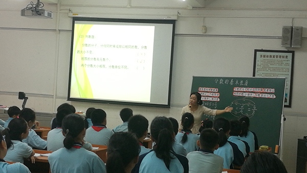 本次活動的第一環節由永一小學晏黎老師帶來《分數的基本性質》的課堂展示。晏黎老師由找算式的不同為切口,讓學生大膽猜測,接著讓學生用方形紙、圓形紙和數軸等豐富的操作的材料來驗證這個等式,并讓學生觀察算式的變化,發現并概括分數的基本性質。然后通過層層遞進的練習讓學生充分理解與應用分數的基本性質解決相關的問題,最后晏老師回歸原題,引出商不變的規律與分數基本性質之間的聯系?;顒拥牡诙h節由晏黎老師根據本次活動的主題對本節課設計意圖進行說明,再由聽課的老師分組進行研討,聽課老師根據此次活動的主題充分的發表自己的看法,整體認為本節課執教老師能以精練的數學語言、富有特色的教學風格、展示數學課堂個性化設計的特殊魅力,并能有效運用《教學要義》提高教學效率。第三環節由教育事務指導中心教研員劉偉光老師總結,劉老師指出教師必須要有責任感,加強研究教學要義,修煉教學基本功。要想提高課堂教學的有效性,教師就要認真研究教什么,怎么教,教到什么程度,怎樣構建高效課堂有效環節等問題,并倡議全體教師要加強交流、共同發展,在自己的專業道路上灑下汗水,收獲成功。