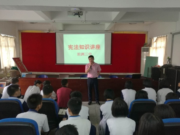 自12月4日國家《憲法》日以來,坦洲三中積極推進(jìn)憲法宣傳工作,在全校大力弘揚(yáng)憲法精神,通過課堂講授、觀看視頻、宣傳小冊、主題班會等多種形式開展一系列憲法宣傳活動,增強(qiáng)廣大師生的憲法意識。2019年4月17日,坦洲三中邀請學(xué)校的法律顧問范華勝律師,為該校師生送去一場法制教育宣傳講座,坦洲三中初一、初二年級全體師生參加了此次講座。