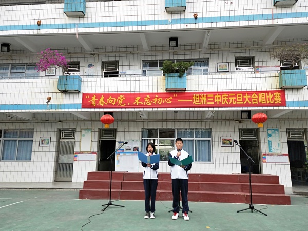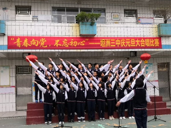為更好地活躍校園文化,增強班級凝聚力,傳遞社會正能量,2018年12月28日下午,坦洲三中團委開展以“青春向黨、不忘初心”為主題的慶元旦班級大合唱比賽。活動在坦洲三中操場舉行,學校有關領導和全體師生觀看了比賽。