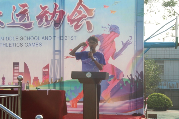 莊嚴肅穆的升國旗儀式后,朱漢業校長宣布運動會開幕。德育處艾金全主任致開幕詞,他回顧了坦洲三中過去一年所取得的輝煌成就,對全校師生積極參與到運動會中去提出期望,還對全體運動員、裁判員及觀眾提出了要求。他希望全體運動員要奮勇爭先、再接再厲,在運動會中賽出風格、賽出水平,并對運動會圓滿成功提出美好祝愿。裁判員代表劉家源老師、運動員代表樊梓權分別向大會進行了宣誓。