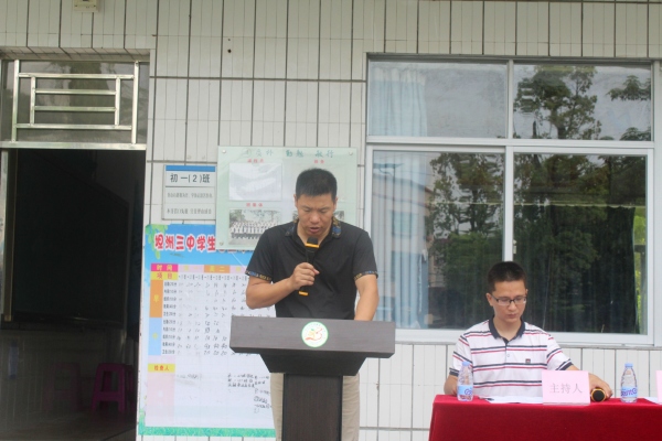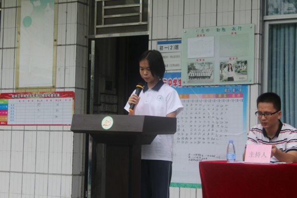 在初三年級畢業典禮上,首先進行的是朱漢業校長致畢業辭,他對初三畢業生也提出三點希望:一要積極面對困難。二要不忘公民責任。三記得常回家看看。接下來頒發畢業證書,表彰優秀畢業生,教師代表、學生代表互訴心聲……三載師生情,相離兩依依。