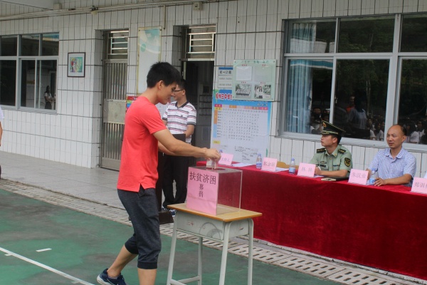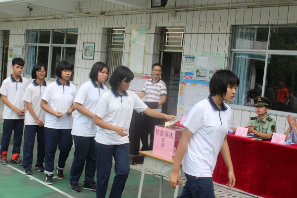 在典禮的最后,為了響應坦洲鎮“扶貧濟困,獻出愛心”的號召,該校結合自己實際,還開展了“三中學子獻愛心”活動,活動過程中,全校師生踴躍參與,獻出自己的一份愛心。