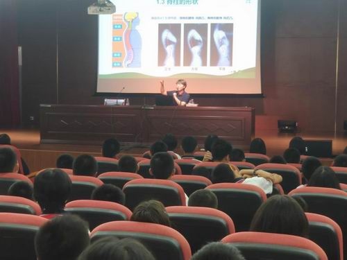 文詩(shī)奇主任從人體正常脊柱的結(jié)構(gòu)、脊柱側(cè)彎的概念、不良姿勢(shì)對(duì)脊柱健康的危害、如何矯正脊柱側(cè)彎和分辨脊柱側(cè)彎等方面展開知識(shí)講座。生動(dòng)的照片,真實(shí)的事例吸引了學(xué)生們的注意,學(xué)生們了解到脊柱側(cè)彎不僅僅影響個(gè)人美觀及心理健康,更可怕的是還會(huì)引發(fā)心肺等重要器官功能的衰退。因此,文詩(shī)奇主任提醒大家,在兒童、青少年時(shí)期,骨骼還未完全發(fā)育成熟的時(shí)候,要避免一切不良生活習(xí)慣對(duì)脊柱造成的傷害。此外,由于此病在早期不痛不癢,容易受到同學(xué)們和家長(zhǎng)的忽視。針對(duì)這一問題,文主任分享了日常脊柱側(cè)彎的自查方法,幫助學(xué)生們及早發(fā)現(xiàn)病癥,及時(shí)糾正。