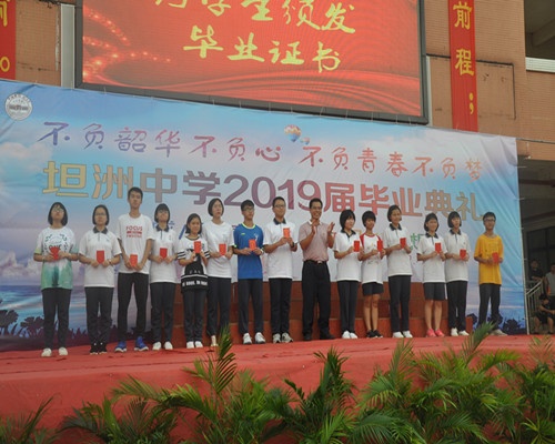 2019年7月4日下午3:00,坦洲中學2019屆初三學生畢業典禮在學校開來大道舉行。學校全體行政領導、初三年級全體師生、各班家長代表共同見證了這重要而又難忘的時刻。